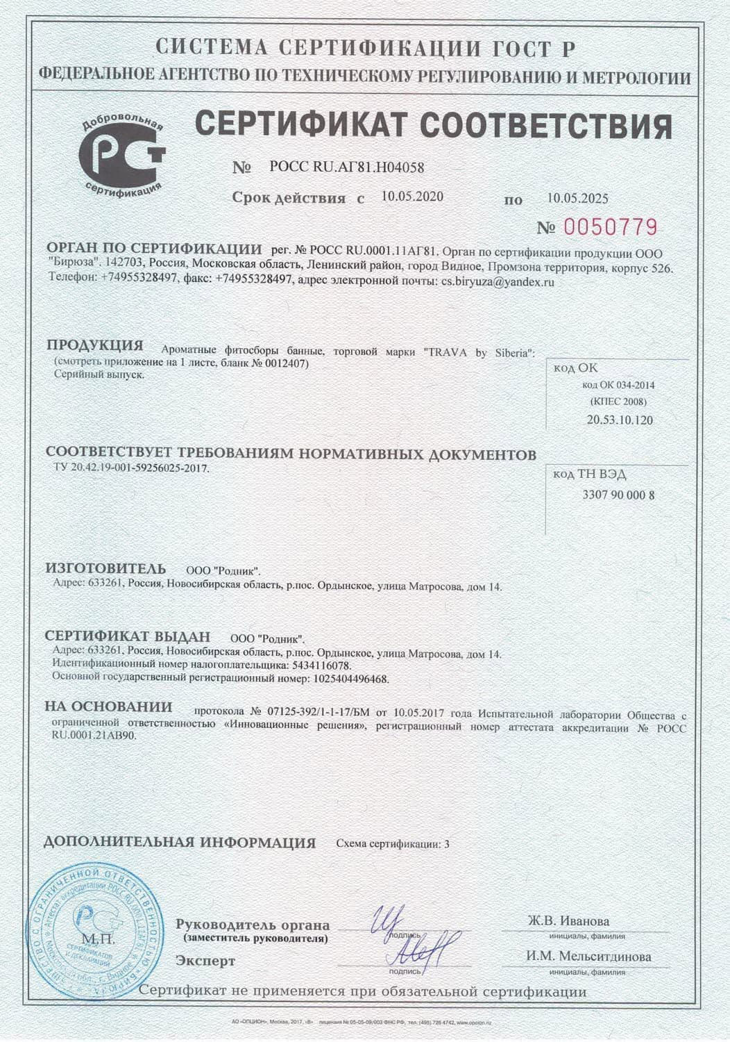 Сертификаты качества товаров для здоровья и отдыха в Одинцово – «РосПар»